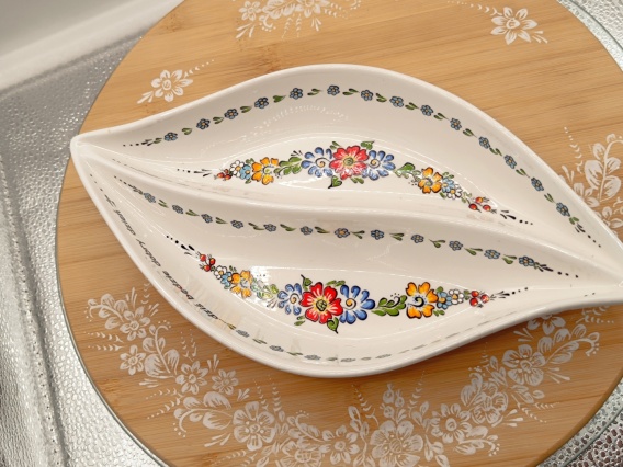 Półmisek ceramiczny dwu komorowy z napisem "...dziś będzie dobry dzień" do codziennego użytku